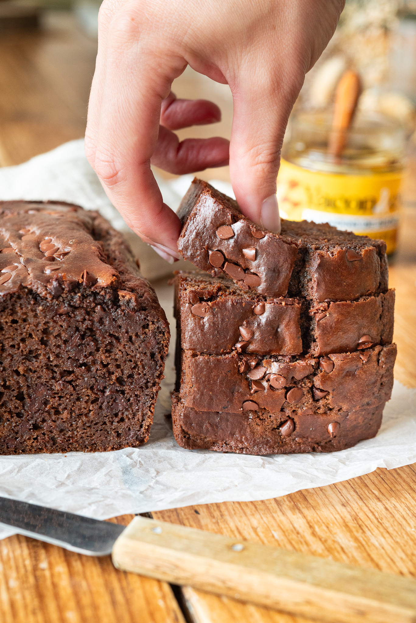 - Versez la pâte dans votre moule, parsemez d’un peu de pépites de chocolat et enfournez durant 30min de cuisson (adaptez selon le moule choisi). Sortez le gâteau du four et laissez refroidir dans le moule.